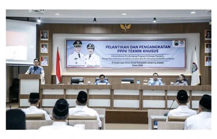 LAMPUNG, Corongpublik// Sebanyak 215 Pegawai Pemerintah dengan Perjanjian Kerja (PPPK) Teknis Khusus Kementerian Sosial yang bertugas di Kabupaten Lampung Selatan resmi menerima Surat Keputusan (SK) pengangkatan.