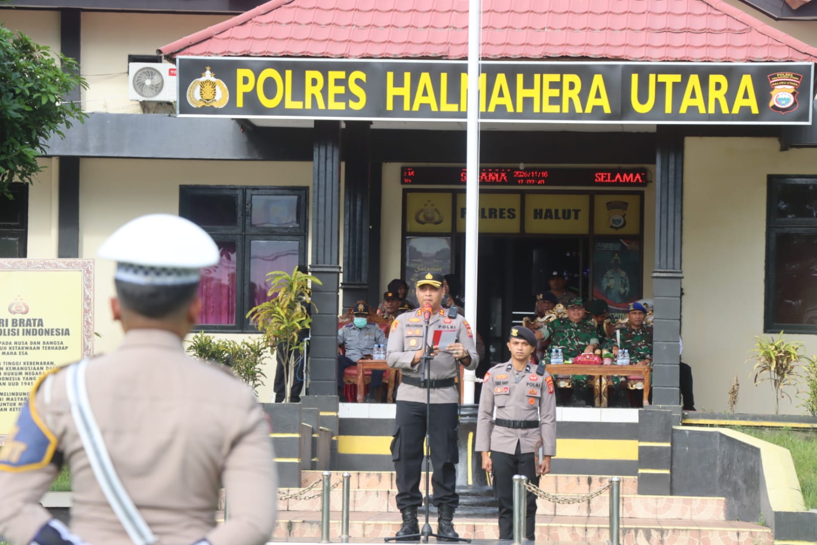 Apel dipimpin Kapolres Halut AKBP Elrikson Pasaribu, SH., S.I.K., dengan KBO Lantas Ipda Rikardo Indo Ratu S.Tr.K., MH., CPHR., CBA sebagai Komandan Upacara dan Kasat Lantas Polres Halut Iptu Risky Ansori Nursyamsu S.Tr.K., S.I.K sebagai Perwira Upacara. Kegiatan turut dihadiri jajaran TNI, Brimob, Satpol PP, Dishub, dan para pejabat utama Polres Halut.