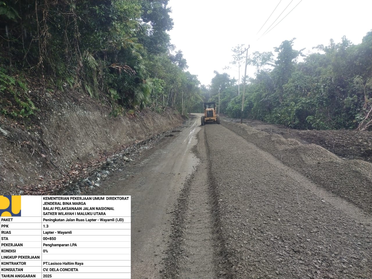 SOFIFI, Corongpublik// Balai Pelaksanaan Jalan Nasional (BPJN) Maluku Utara memastikan progres pembangunan ruas Lapter-Wayamli di Kabupaten Halmahera Timur terus meningkat dan berjalan sesuai ketentuan teknis program Instruksi Presiden (Inpres) Jalan Daerah. Proyek strategis ini ditujukan untuk mempercepat konektivitas wilayah, mendukung mobilitas masyarakat, dan memperkuat pemerataan pembangunan di Maluku Utara.