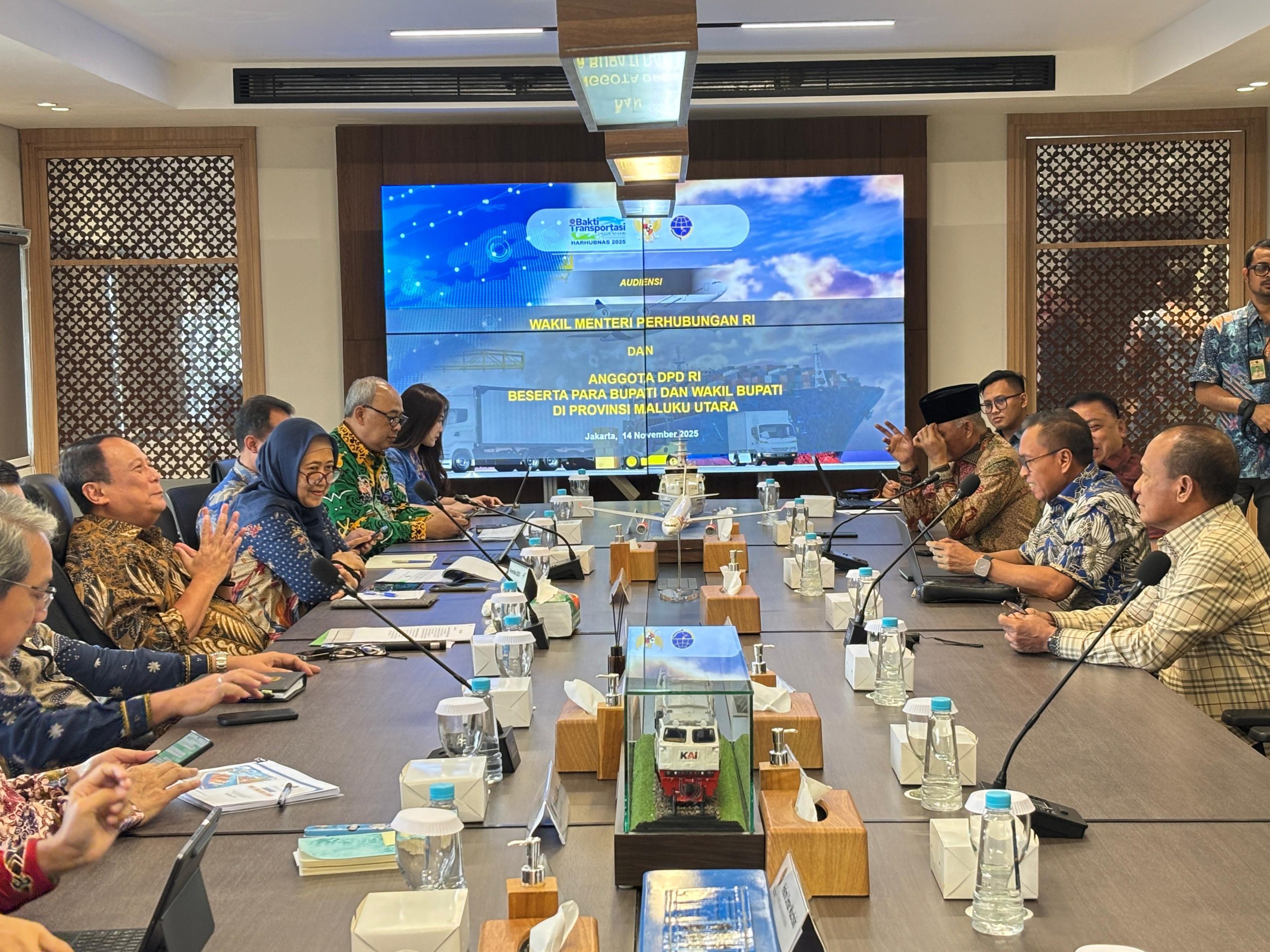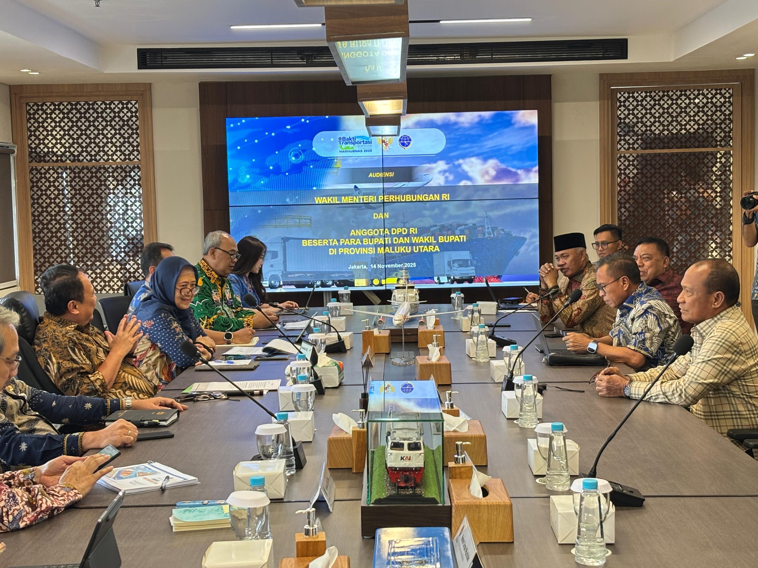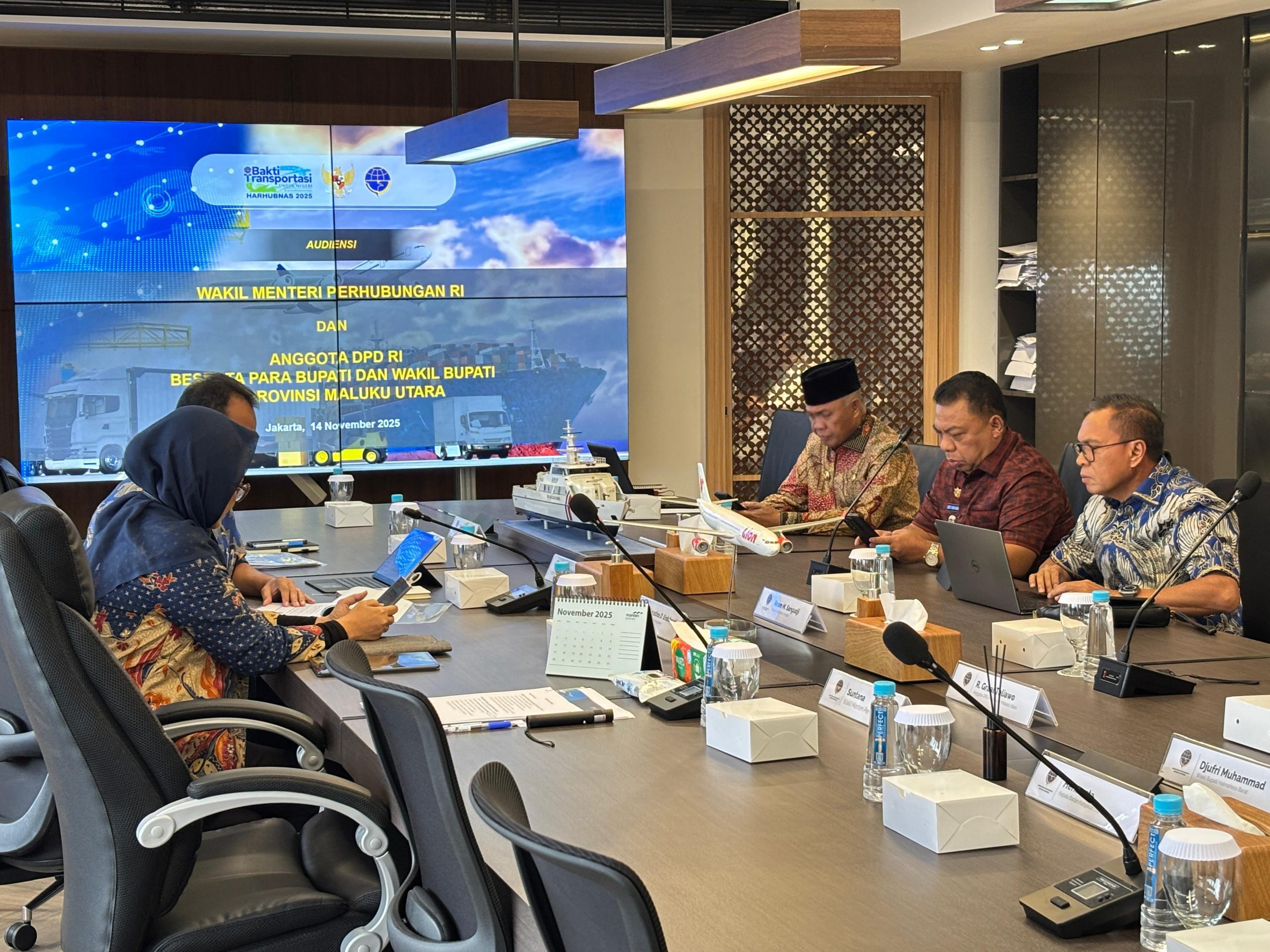 JAKARTA, Corongpublik// Bupati Halmahera Tengah, Ikram M. Sangadji, menyampaikan sejumlah persoalan strategis sektor perhubungan dalam audiensi bersama Wakil Menteri Perhubungan RI, Komjen (Purn.) Suntana, M.Si., di Gedung Karsa Kemenhub, Jumat (14/11/2025). Pertemuan tersebut turut difasilitasi oleh Anggota DPD RI, Graal Taliawo, dan dihadiri para bupati se-Provinsi Maluku Utara.