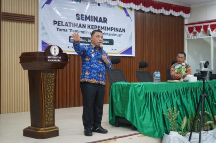 TOBELO, Corongpublik // Pemerintah Kabupaten Halmahera Utara menegaskan komitmennya mempercepat pembangunan daerah melalui kolaborasi strategis dengan perguruan tinggi. Penegasan ini disampaikan langsung Bupati Halmahera Utara, Piet Hein Babua, dalam Seminar dan Pelatihan Kepemimpinan bertema “Pemimpin yang Berintelektual” di Universitas Halmahera (Uniera), Senin (20/10).