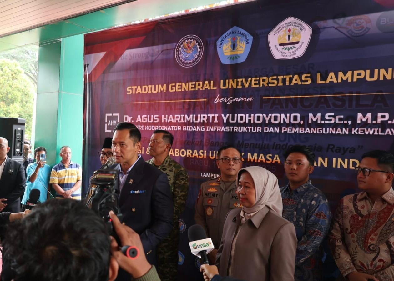 Dalam lawatan Menko AHY diketahui menyambangi dua lokasi. Pertama, mengisi kuliah umum di hadapan ribuan mahasiswa di GSG Universitas Lampung (Unila). Kedua, mengecek dan meninjau langsung lokasi gedung sementara Sekolah Rakyat Menengah Atas (SRMA) 32 di Kabupaten Lampung Selatan.