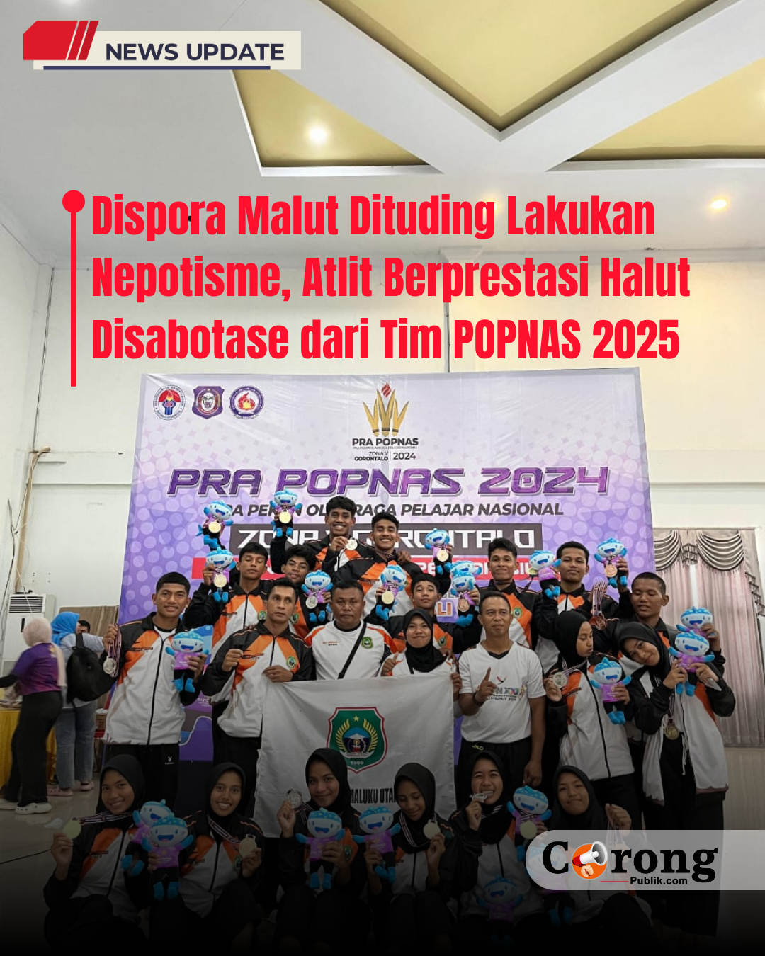 TOBELO, Corongpublik// Persiapan Maluku Utara menghadapi Training Center (TC) menuju Pekan Olahraga Pelajar Nasional (POPNAS) 2025 melalui Dinas Pemuda dan Olahraga (Dispora) Provinsi Maluku Utara menuai kritik dan kekecewaan dari sejumlah pelatih daerah. Pasalnya, proses seleksi atlet dinilai sarat dengan praktik nepotisme dan tidak profesional.