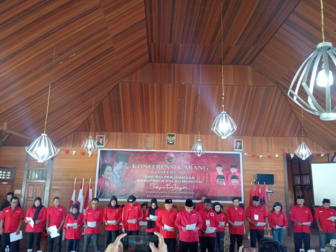 MOROTAI, Corongpublik// Dewan Pimpinan Cabang (DPC) PDI Perjuangan Pulau Morotai resmi menetapkan arah kepemimpinan baru melalui Konferensi Cabang (Konfercab) yang digelar di D’loha Resort Jababeka, Jumat (28/11/2025). Agenda ini menandai langkah strategis partai dalam mempersiapkan diri menghadapi kontestasi politik mendatang.