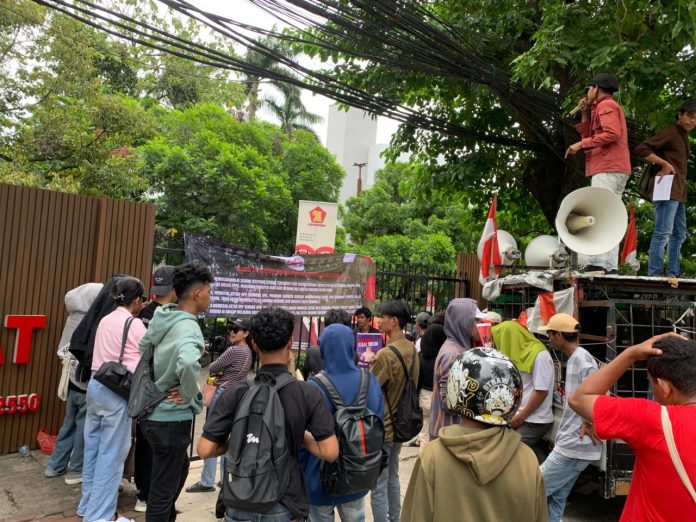 JAKARTA, Corongpublik// Desakan moral terhadap Partai Gerindra kembali mengemuka. Aliansi Mahasiswa Maluku Utara Anti Korupsi Jakarta (AMMUAKOJA) menggelar aksi demonstrasi di depan Kantor DPP Partai Gerindra dan Komisi Pemberantasan Korupsi (KPK) RI, Jumat (24/10/2025).
