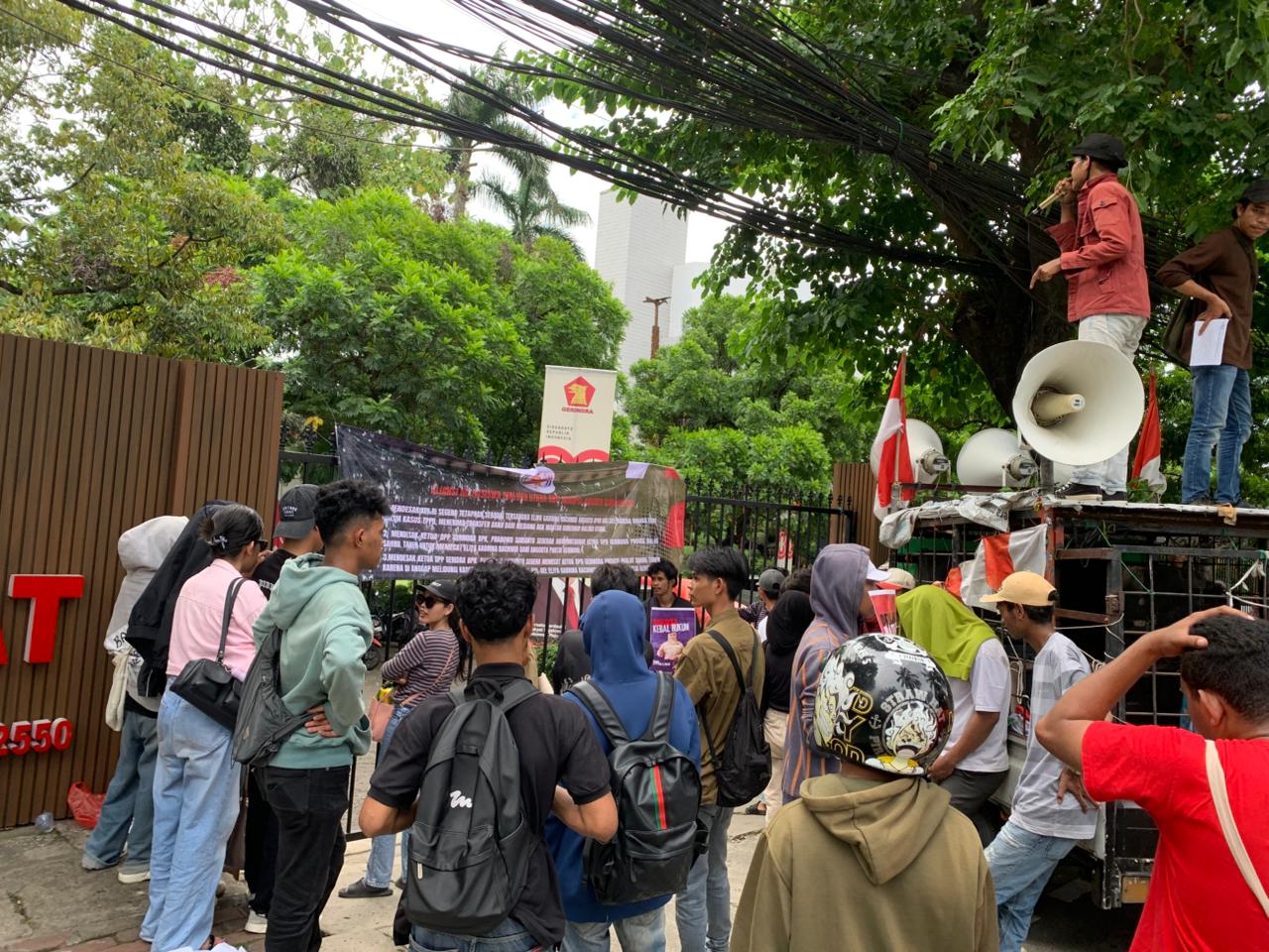 “Bersihkan Gerindra dari Kader Korup dan Prabowo Tegas, Jangan Tolerir Korupsi!” sebagai bentuk seruan agar partai tidak abai terhadap persoalan etika dan hukum di internalnya.