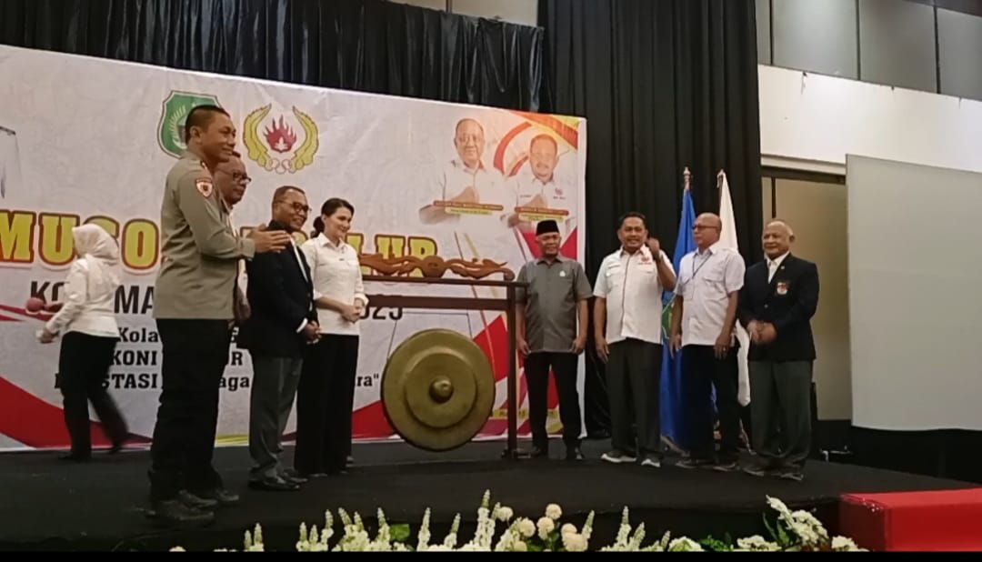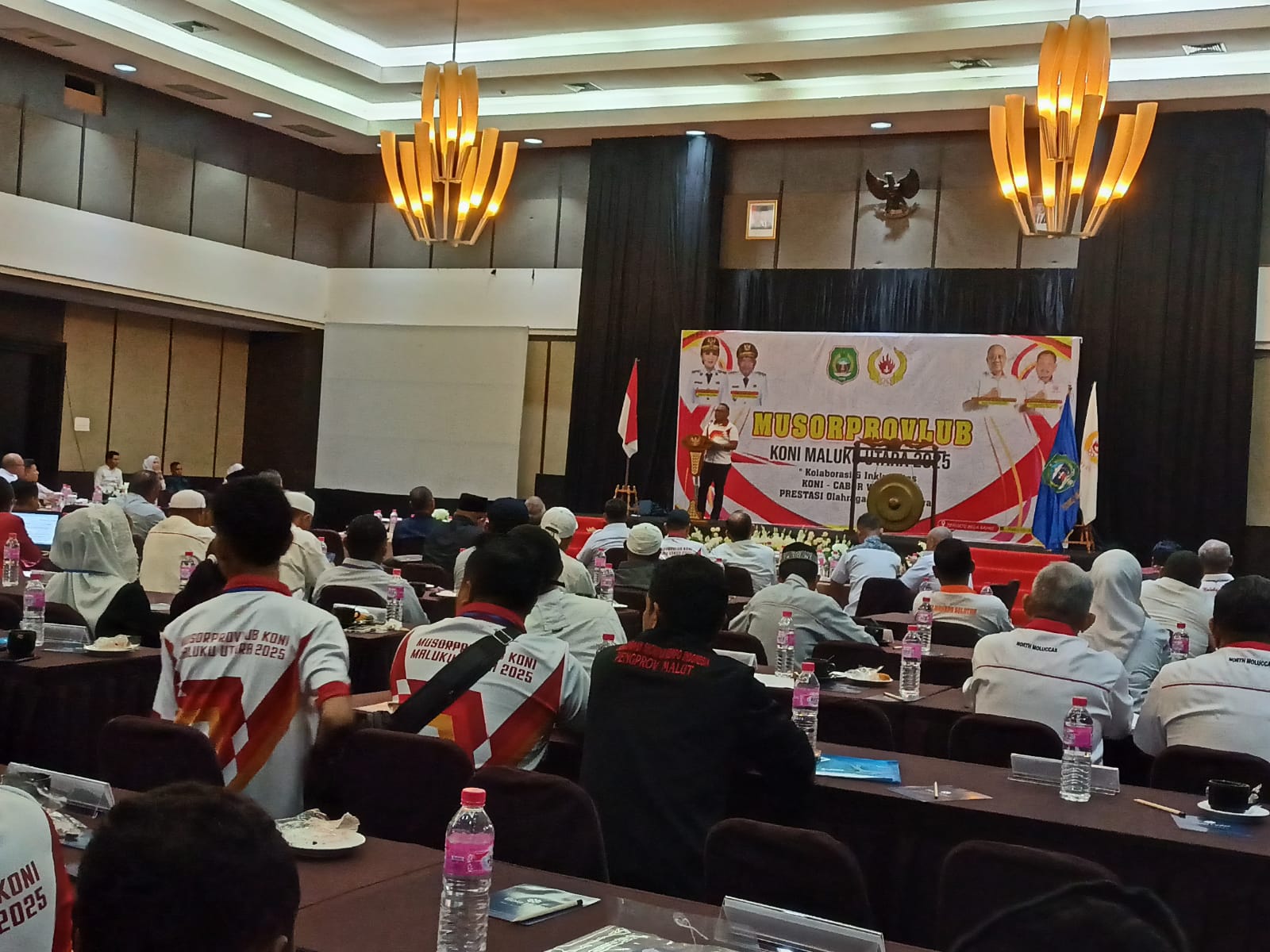 TERNATE, Corongpublik// Komite Olahraga Nasional Indonesia (KONI) Provinsi Maluku Utara secara resmi menggelar Musyawarah Olahraga Provinsi Luar Biasa (Musorprovlub) di Hotel Sahid Bela Ternate, Rabu (15/10/2025). Agenda utama forum ini adalah pemilihan Ketua Umum KONI Maluku Utara masa bakti 2025-2029.