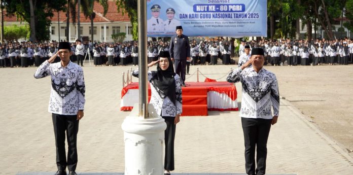 LAMPUNG, Corongpublik// Peringatan Hari Ulang Tahun (HUT) ke-80 Persatuan Guru Republik Indonesia (PGRI) yang dirangkaikan dengan Hari Guru Nasional (HGN) 2025 berlangsung khidmat di Lapangan Korpri Kalianda, Lampung Selatan, Selasa (25/11/2025). Upacara yang mengusung tema “Guru Bermutu Indonesia Maju, Guru Hebat Indonesia Kuat, Bersama PGRI Wujudkan Indonesia Emas” ini menjadi momentum refleksi panjang perjalanan delapan dekade PGRI.