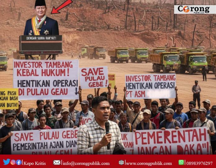 JAKARTA, Corongpublik// Keberadaan tambang di Pulau Gebe, Kabupaten Halmahera Tengah, Maluku Utara kembali menuai gelombang kritikan. Aktivis menilai perusahaan tambang PT Anugerah Sukses Mining (ASM) kebal hukum, meski jelas melanggar aturan yang melarang eksploitasi di pulau kecil. Desakan muncul agar pemerintah segera menghentikan sementara seluruh aktivitas pertambangan di wilayah tersebut.