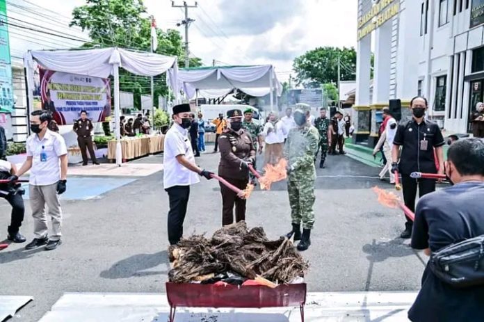 Pemusnahan yang digelar di halaman Kantor Kejari Lampung Selatan itu menjadi wujud ketegasan negara dalam memberantas berbagai bentuk kejahatan yang mengancam masyarakat.