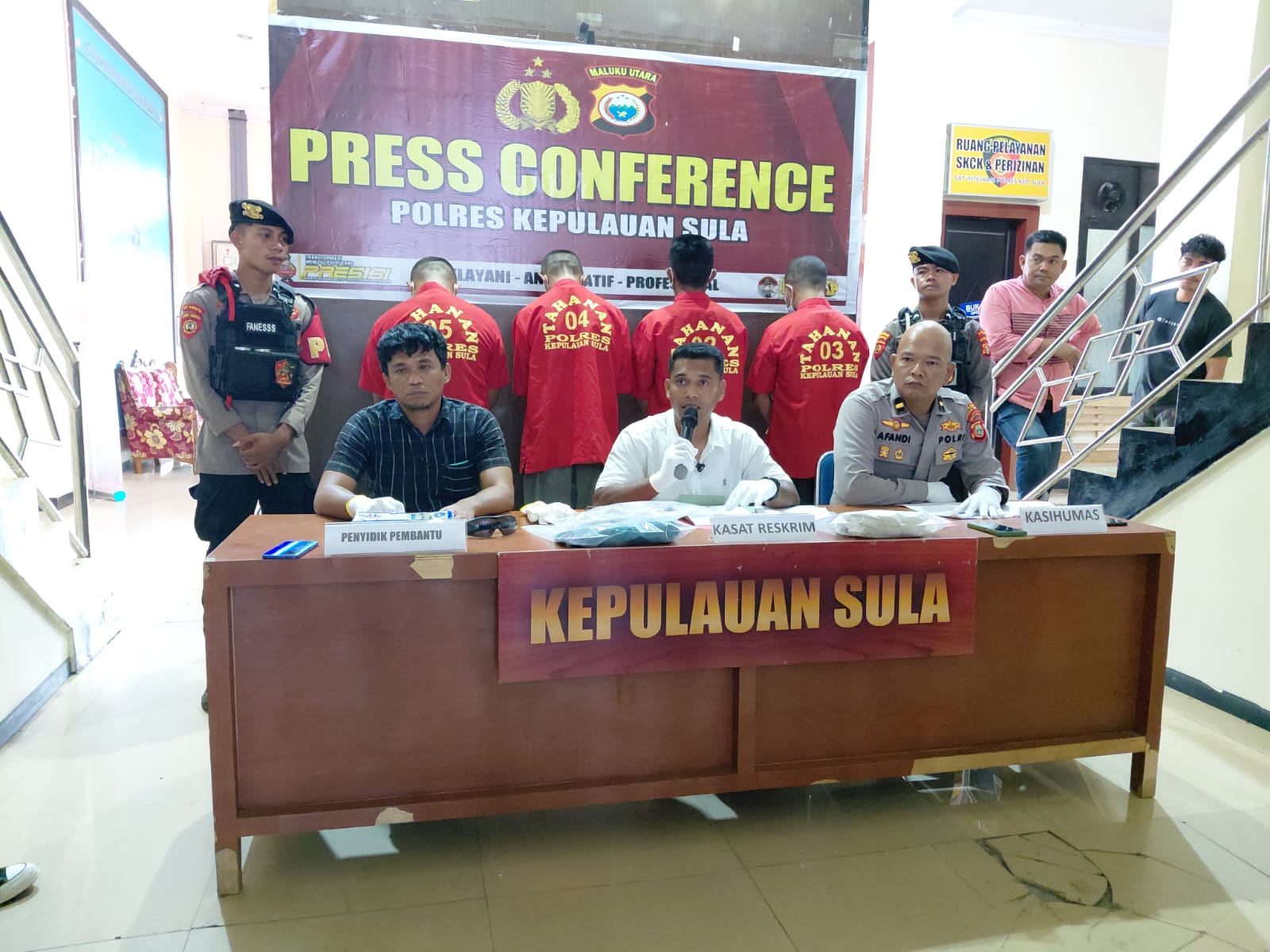 Konferensi pers digelar Selasa (02/12/2025) dan dipimpin Kasat Reskrim IPTU Wawan Lauwanto, mewakili Kapolres AKBP Kodrat Muh. Hartanto. Polisi memaparkan bukti-bukti berupa tiga helai pakaian milik korban dan tersangka, serta kronologi pengeroyokan yang terjadi pada 23 November 2025 di Desa Mangoli, Kecamatan Mangoli Tengah.