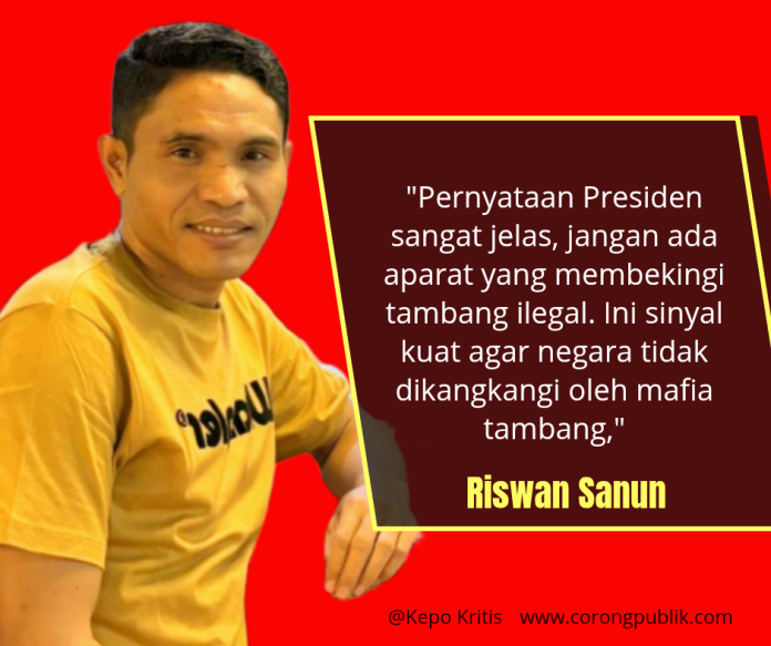 “Pernyataan Presiden sangat jelas, jangan ada aparat yang membekingi tambang ilegal. Ini sinyal kuat agar negara tidak dikangkangi oleh mafia tambang,” tegas Riswan, Sabtu (17/8).