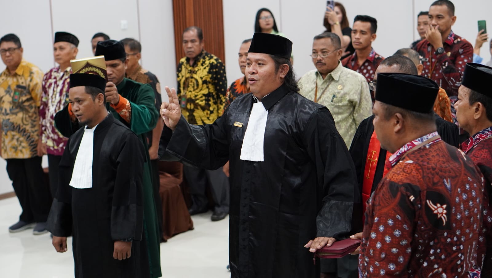 Prosesi pengambilan sumpah turut disaksikan oleh rohaniawan Pdt. Benyamin Ewi, S.Ag., serta Asis Musi, S.Sos., M.Si., yang hadir sebagai saksi dalam acara tersebut.