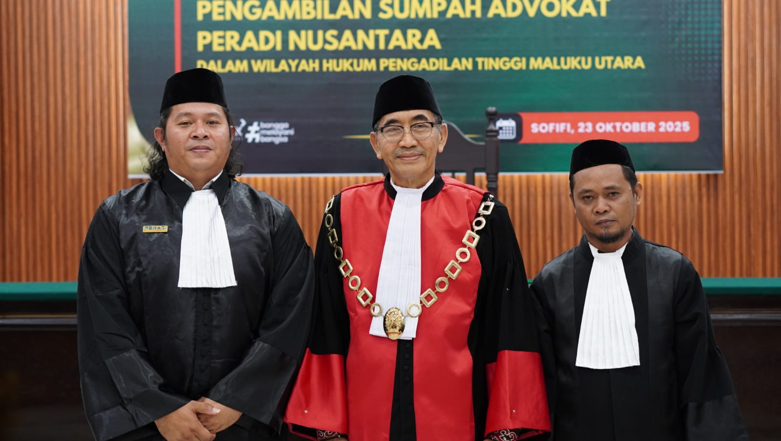 Dalam prosesi tersebut, dua advokat baru resmi mengucapkan sumpah dan janji di hadapan Ketua Pengadilan Tinggi Maluku Utara, yakni Dr. Tommy Sanfaat, S.H., S.Th., M.Th., M.Pd. dan Mahdi Pangadi, S.H.