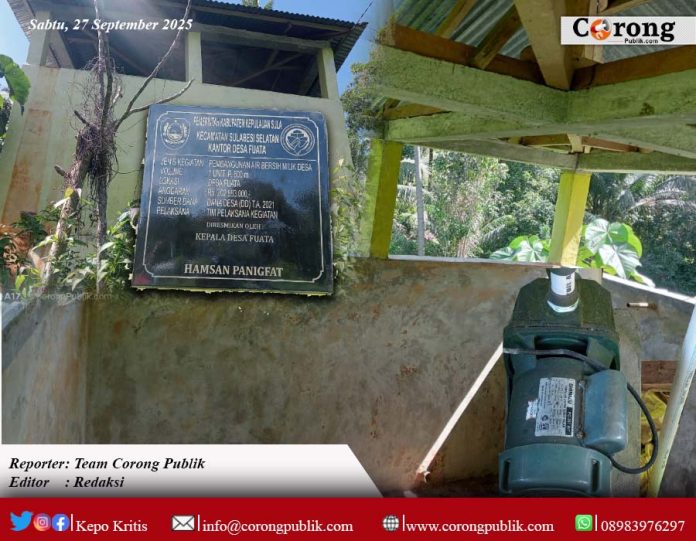 SANANA, Corongpublik// Warga Desa Fuata, Kecamatan Sulabesi Selatan, Kabupaten Kepulauan Sula, Maluku Utara, tengah menghadapi krisis air bersih yang kian meresahkan. Pasalnya, proyek penampungan air bersih bernilai ratusan juta rupiah yang dibangun pada 2021 terbengkalai, membuat kebutuhan dasar masyarakat tak terpenuhi.