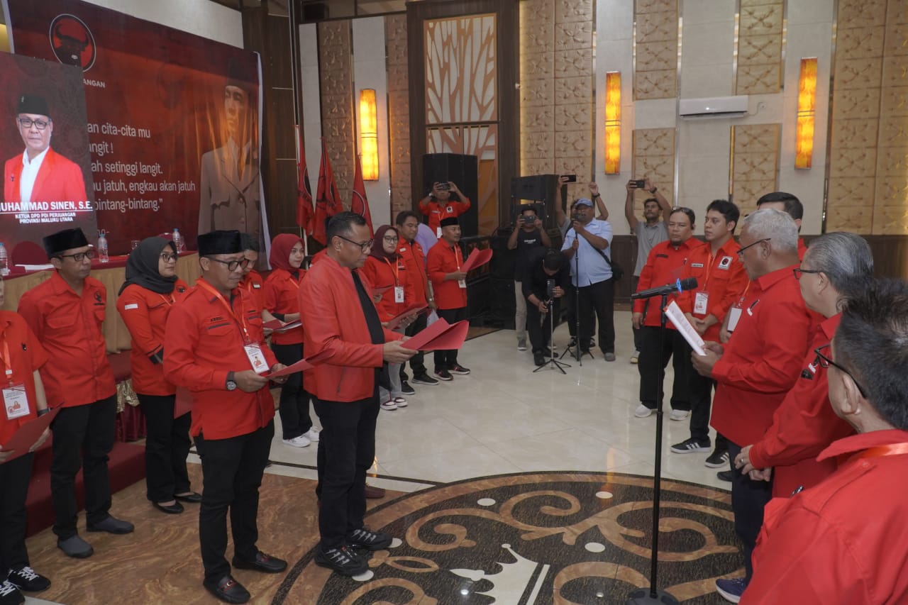 Dalam sambutannya, Sinen menyampaikan apresiasi dan rasa terima kasih kepada seluruh pengurus Dewan Pimpinan Cabang (DPC) kabupaten/kota yang telah mempercayainya kembali memimpin partai berlambang banteng moncong putih tersebut.