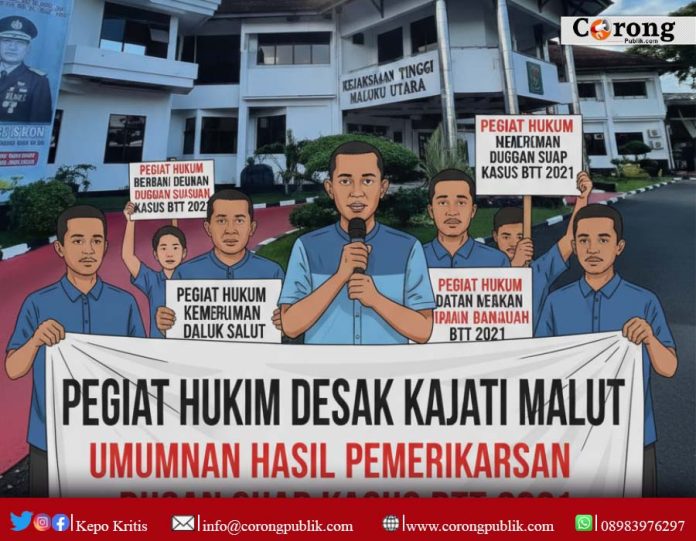 SANANA, Corongpublik// Kejaksaan Tinggi (Kejati) Maluku Utara didesak untuk segera membeberkan hasil pemeriksaan internal terkait dugaan penerimaan suap oleh oknum jaksa yang menangani kasus Bantuan Tak Terduga (BTT) tahun 2021. Desakan ini muncul setelah adanya pengakuan dalam persidangan yang mengindikasikan adanya transaksi uang suap untuk menghentikan proses hukum.