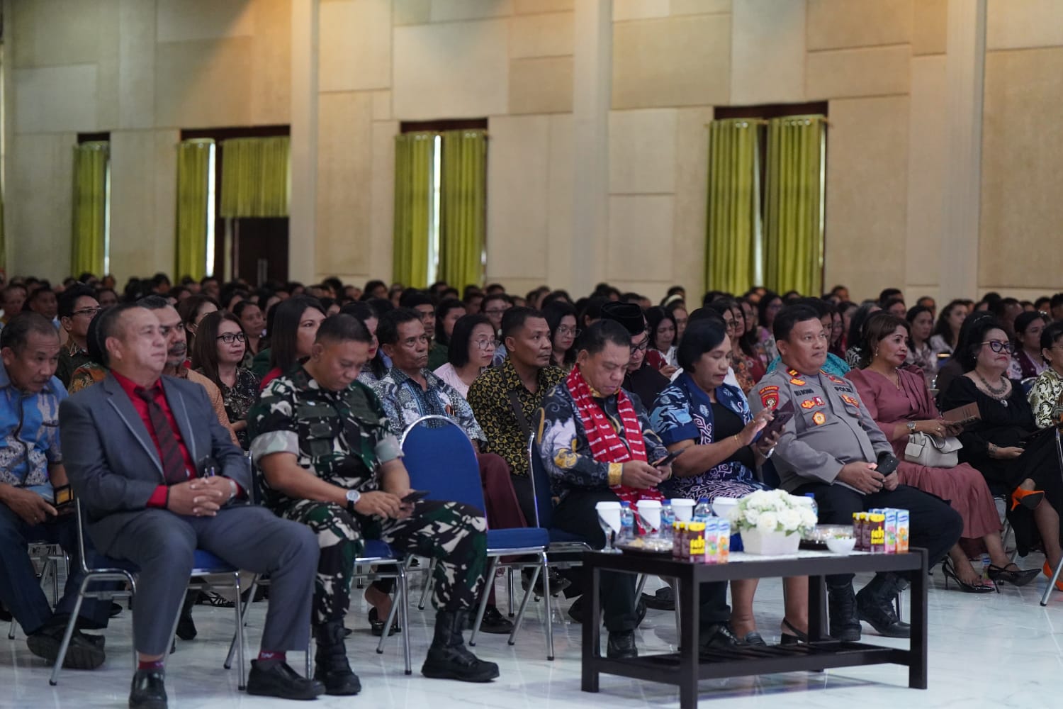 Kegiatan tersebut dihadiri sekitar 500 jemaat dan berbagai unsur pimpinan daerah, termasuk Bupati Halmahera Utara Dr. Piet Hein Babua, Ketua DPRD Halut Cristina Lesnussa, Dandim 1508/Tobelo Letkol Inf. Alex Donald M.L. Gaol, perwakilan Polres Halut, pimpinan OPD, ASN, serta tokoh agama, tokoh masyarakat, dan tokoh pemuda.