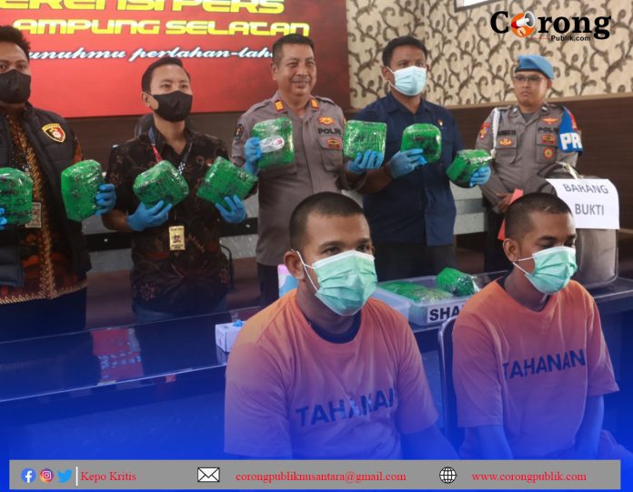 LAMPUNG, Corongpublik// Satuan Reserse Narkoba Polres Lampung Selatan berhasil menggagalkan upaya penyelundupan narkotika jenis sabu seberat 11,8 kilogram. Dua kurir asal Aceh ditangkap saat bus yang mereka tumpangi berhenti di sebuah rumah makan di Kecamatan Bakauheni, Senin (18/8/2025) malam.