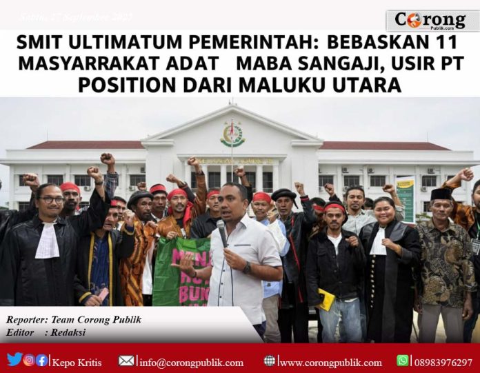 JAKARTA, Corongpublik// Dukungan terhadap 11 masyarakat adat Maba Sangaji terus mengalir. Setelah berbagai elemen aktivis, pemuda, mahasiswa, hingga masyarakat desa menyuarakan tuntutan, kini giliran Solidaritas Muda Indonesia Timur (SMIT) yang menyatakan sikap tegas. Mereka menuntut pembebasan 11 warga adat yang ditahan, sekaligus mendesak penghentian aktivitas PT Position di Maluku Utara.